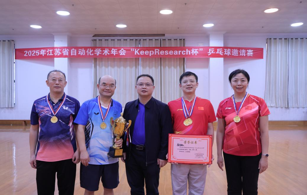 “KeepResearch杯”乒乓球邀请赛汇聚了来自省内外高校的8支精英队伍,包括东南大学、南京航空航天大学、江南大学、江苏师范大学、盐城师范学院、南京工程学院、南京晓庄学院,以及特邀的由哈尔滨工业大学、上海理工大学、大连海事大学等高校联合组成的省外联队,彰显了江苏省自动化学会倡导的开放交流、团结合作、共同进步的精神。经过上午小组赛的紧张角逐,省外联队、江南大学、徐州工程学院、盐城师范学院、南京晓庄学院和南京航空航天大学六支队伍脱颖而出,成功晋级下午的淘汰赛阶段。在下午的激烈对决中,冠军的争夺战达到了高潮。各队领队精心策划,巧妙布阵,运动员们技艺高超,相互切磋,不仅展现了竞技风采,更在交流中加深了友谊。